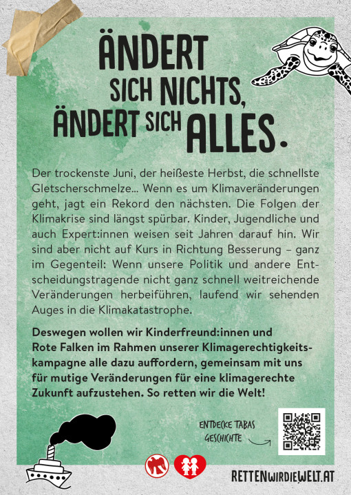Deswegen wollen wir Kinderfreund:innen und Rote Falken im Rahmen unserer Klimagerechtigkeitskampagne alle dazu auffordern, gemeinsam mit uns für mutige Veränderungen für eine klimagerechte Zukunft aufzustehen. So retten wir die Welt!